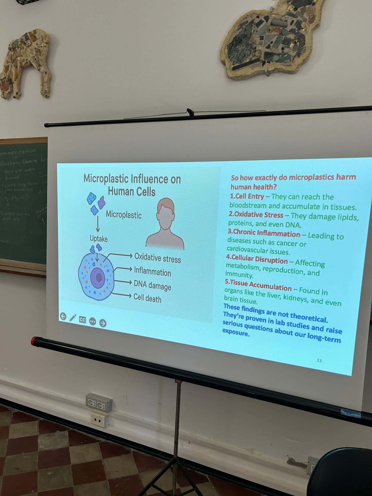 Within this communication, it was presented the devastating impact of microplastics and toxic additives on nature, ecosystems, and human health. Invisible plastic particles carrying BPA, phthalates, styrene, and heavy metals are now present in air, water, soil, food, and human blood, causing hormonal disruption, chronic inflammation, fertility problems, and increased cancer risk.